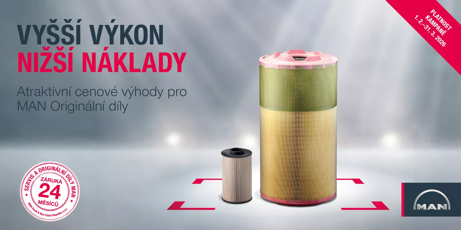 V MAN si uvědomujeme obrovský tlak zákazníků na snižování nákladů a snažíme se vás maximálně podpořit v optimalizaci vašich celkových nákladů na vlastnictví (TCO). Proto jsme přijali různá opatření, která nám umožňují snížit ceny mnoha originálních dílů MAN.